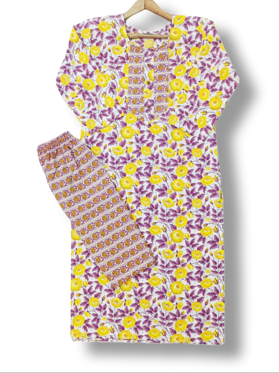 PRINTED COTTON KURTI PANT SET - L + XL + 2XL