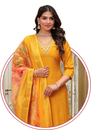 PRINTED COTTON KURTI PANT SET WITH DUPATTA